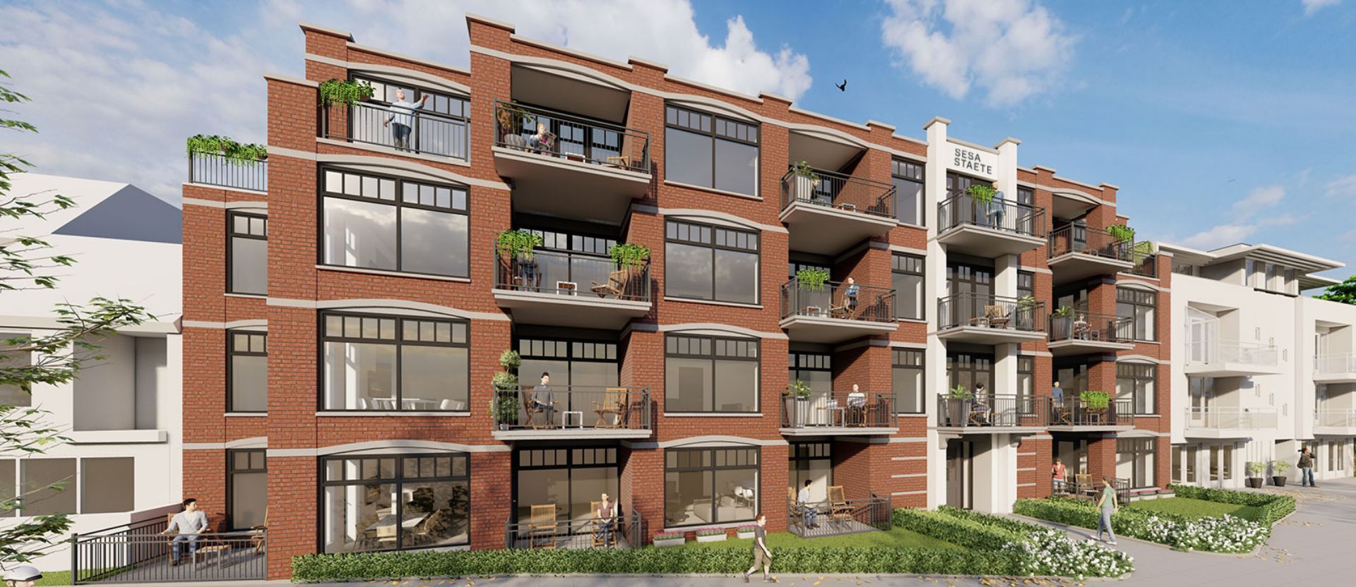 Bijzonder trots zijn wij op de 15 ruime, luxe appartementen aan de Poulinkstraat in Almelo, die we samen met Linneman realiseerden. De naam, Sesastaete, ontleent het appartementencomplex aan de Sesafabriek, de voormalige kapok-, veren- en tricotfabriek die eerder op deze plek te vinden was.